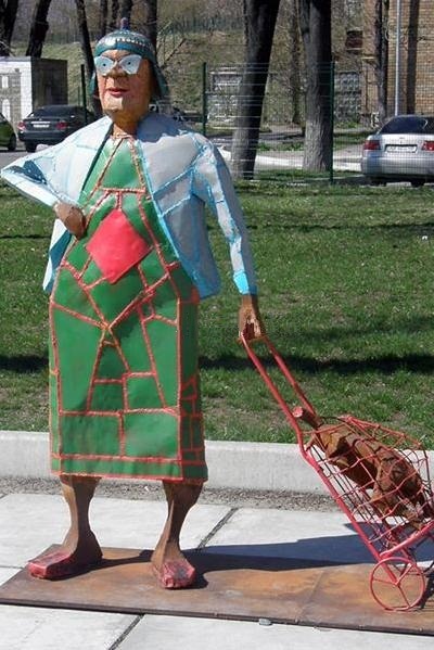 Автор второй скульптуры из серии «Бабки» – художница Анна Киселева. Первая «бабка» сидит на лавочке в парке Шевченко в Киеве.