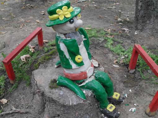 - Хотел отвести дочку на новую площадку и заранее решил проверить, что там и как, - рассказал «Комсомолке» киевлянин Владимир Мойсеенко. – Но когда пришел в парк – обомлел. У новых скульптур отбиты руки, сломан игровой инвентарь...