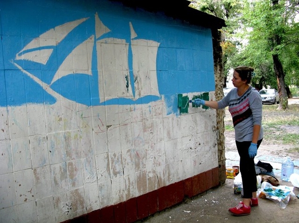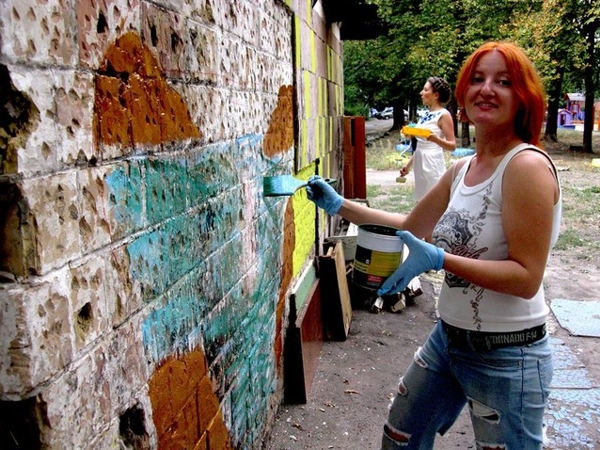 «Было очень весело, особенно когда дети со двора пришли помогать», - пишет на своей странице в Facebook Анастасия Костенко, одна из художниц.