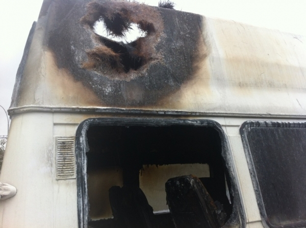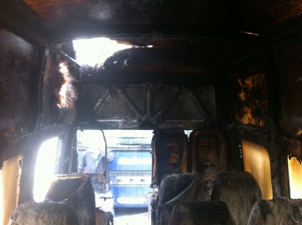 Через 4 минуты на место происшествия прибыли пожарно-спасательные подразделения и быстро ликвидировали пожар. Огонь успел повредить внутреннюю обшивку салона и внешнюю покраска микроавтобуса.