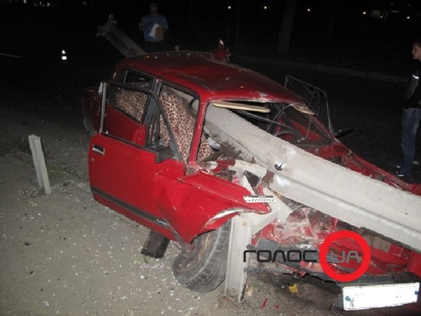 Здесь, «Жигули» седьмой модели, двигаясь от Одесской площади в направлении Столичного шоссе, на закруглении дороги выскочили на тротуар и через несколько десятков метро машина на полном ходу врезалась в отбойник.
