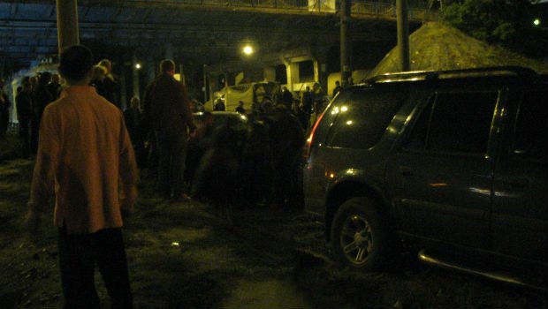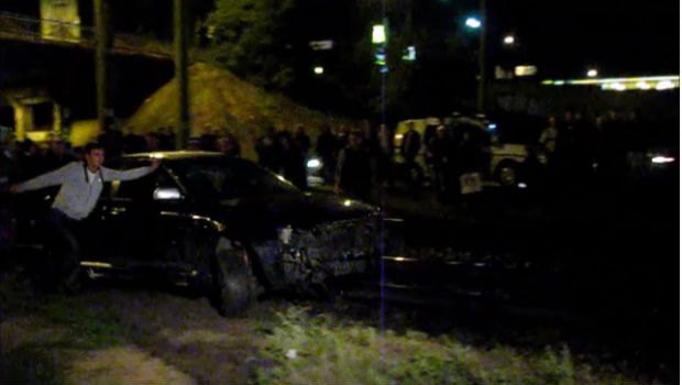 В Киеве пьяные девушки на автомобиле приземлились перед поездом (ФОТО)