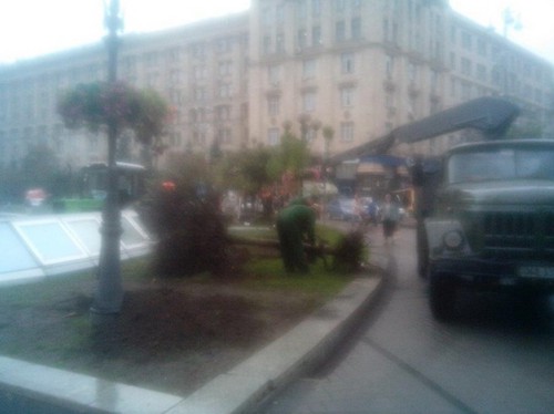 Вчера прямо на Майдане Независимости журналисты стали случайными свидетелями того, как на площади позади стеклянного купола ТРЦ «Глобус» выкапывали примерно двухметровые деревья. Растения, которые уже выкорчевали, грузили на грузовики с помощью автокрана. Таким образом вывезли около десятка деревьев.