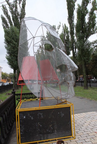 В Киеве напротив парка Шевченко появилась необычная конструкция. Там установили огромное лицо, сделанное из сетки, которая натянута на каркас. Никаких объяснений рядом с конструкцией нет. Черты лица напоминают Николая Гоголя – возможно, это одна из скульптур, установленных в рамках ГогольFest'а.