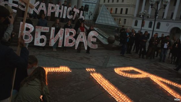 Как сообщает корреспондент Русской службы «Голоса Америки», вечером 16 сентября на площадь Независимости в Киеве пришли около сотни украинских журналистов, которые почтили память погибших коллег.
