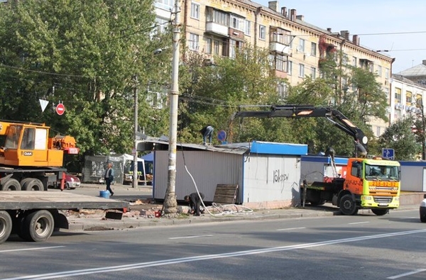 Сегодня утром в Киеве на Голосеевском проспекте (40-летия Октября) демонтируют МАФы. Фотографии процесса выложил в «Фейсбуке» общественный активист Николай Даневич.
