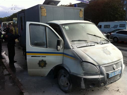 В Киеве возле метро «Святошино» загорелся автомобиль для перевозки заключенных. Корреспондент «Комсомольской правды в Украине» стал свидетелем неординарного события.