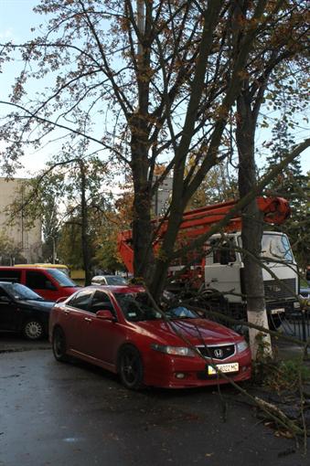 Понедельник, 23 сентября, оказался тяжелым днем для владельца красной «Хонды», припаркованной около жилой 5-этажки на ул. Смелянской. Под порывами ветра сломалась ветка близстоящего высокого каштана. Огромный обломок буквально пронзил иномарку. Дерево проткнуло лобовое стекло и погнуло крышу автомобиля.
