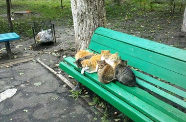 В одном из киевских парков на лавочке собрались сразу семь уличных котов. Животные сидят, тесно прижавшись друг к другу, чтобы согреться. Фото появилось на странице «Блоггерского Киева» в «Фейсбуке».