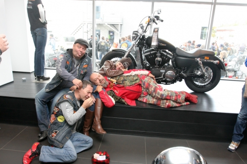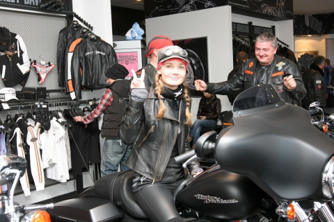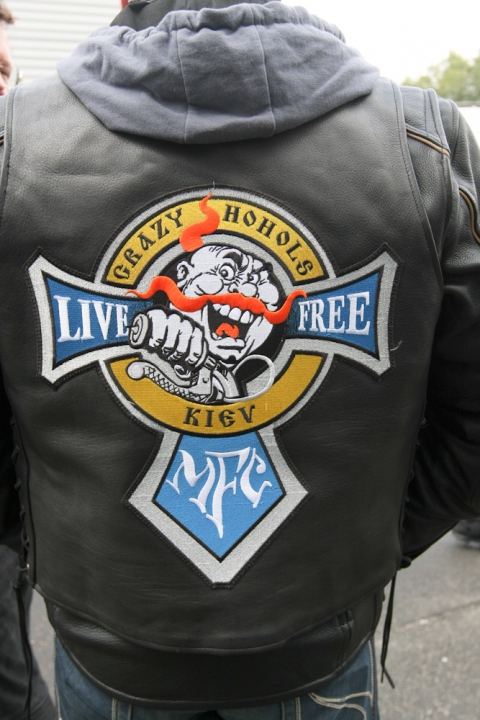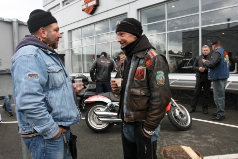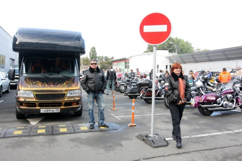 Почти с каждого мотоцикла играет рок. Байкеры в кожаных куртках и брюках. На голове очки и черные банданы. Большинство носит бороду. На пальцах куча колец, а на запястьях браслетов. На улице плюс пять тепла, поэтому большинство согреваются кофе, а некоторые и виски. Пьют прямо из горла, как пиво.