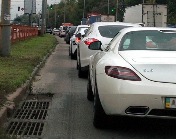 Передвигается автомобиль в сопровождении Mercedes SLS AMG киевской регистрации и Porsche Panamera с украинскими номерами.