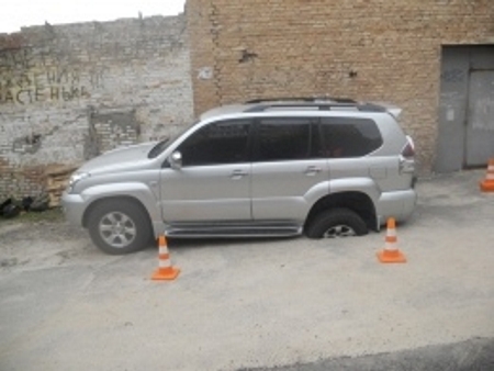Во вторник, 8 октября, на улице Киквидзе, 13-А, автомобиль «Тойота Лэнд Крузер» колесом провалился в образовавшуюся яму на асфальте.