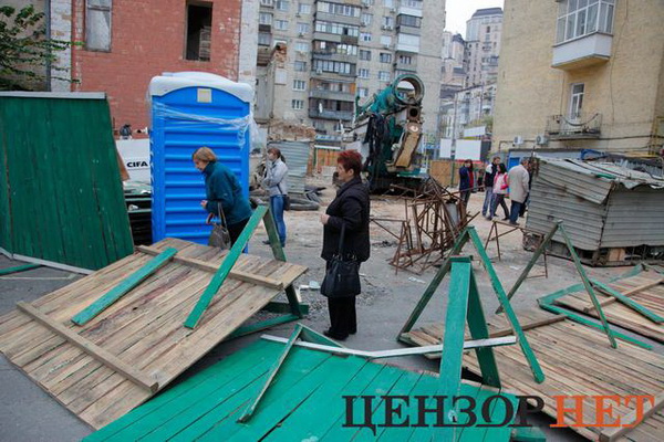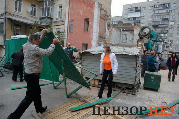 В центре Киева местные жители продолжают протесты против незаконного строительства, а также уничтожения исторического особняка. Киевляне прорвались на территорию стройки и повалили забор вокруг нее.