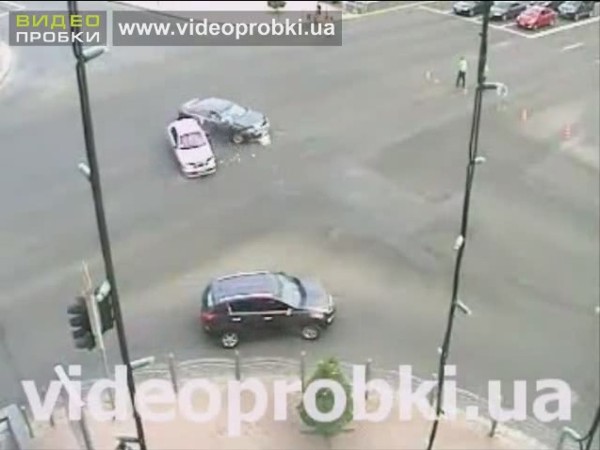 Не смотря на это, прямо на наших глазах происходит достаточно сильное боковое столкновение с водителем Ланоса. В итоге, серебристый Ланос выносит за ограду, а черный автомобиль разворачивает на 180 градусов.