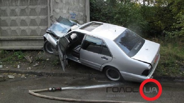 В Соломенском районе «Мерседес» пробил бетонный забор (ФОТО)