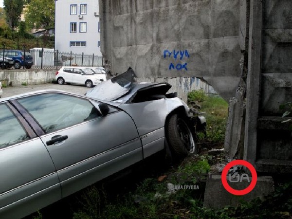 Через несколько сотен метров машина без видимых причин потеряла управление и ушла вправо, где врезалась в бетонный забор.
