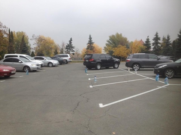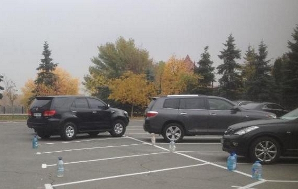 Парковку в элитном районе столицы охраняют бутылки (ФОТО)