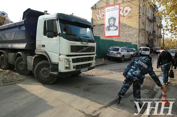 В Десятинном переулке вывесили баннер «Боже, спаси Киев от незаконных застроек!» (ФОТО)