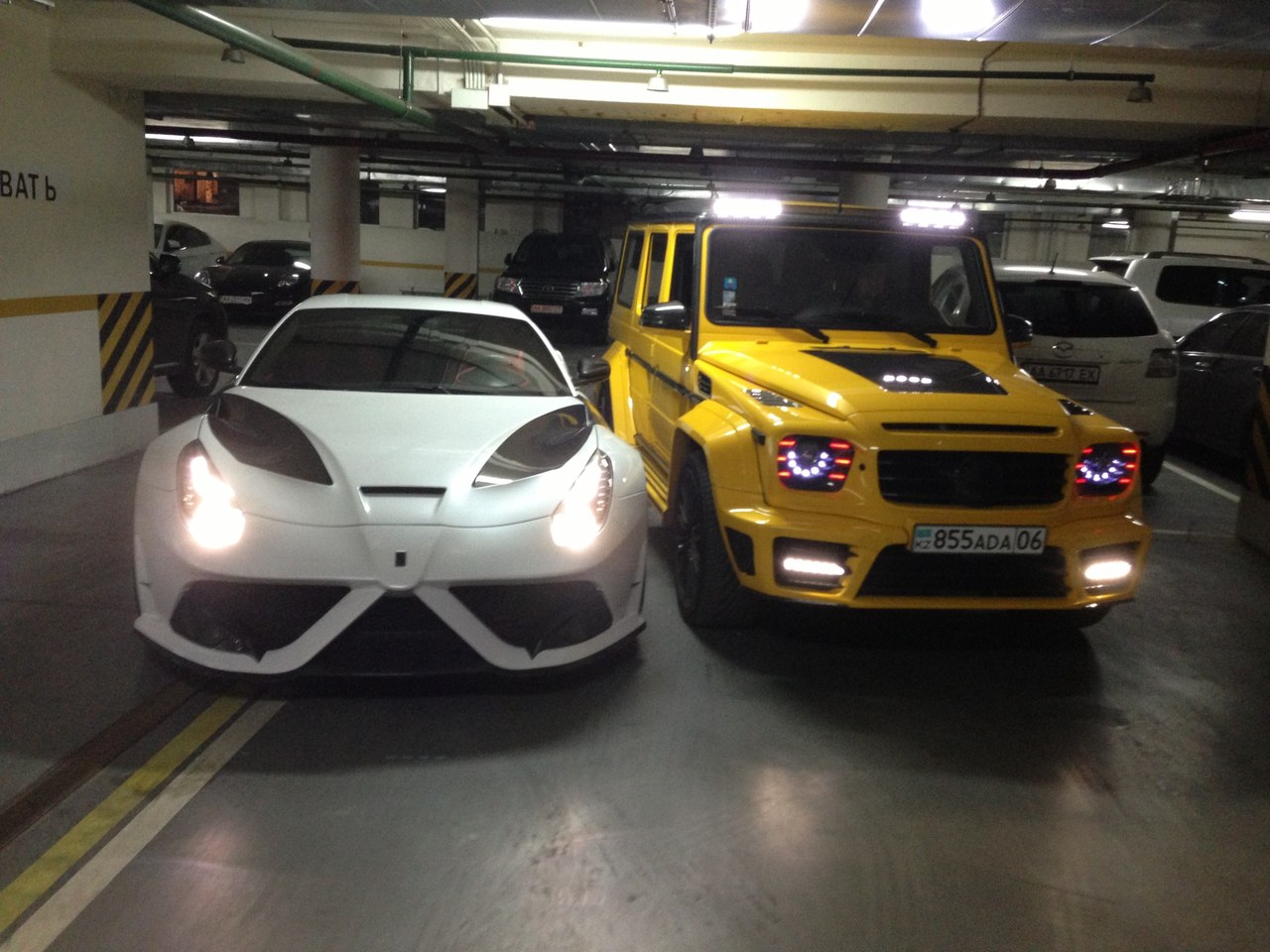 На фото можно увидеть Ferrari Berlinetta Mansory Stallone за 7 миллионов гривен, о которой мы уже писали. Плюс к этому единственный (!) в мире Mercedes-Benz G MANSORY GRONOS, созданный специально для некого КаЗаХа.