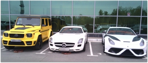 На фоне этих машин стоковый Mercedes SLS AMG выглядит как-то даже бедноватенько… в общей сложности, данные авто тянут на 20 миллионов гривен. И это без учета Porsche Panamera, которая частенько сопровождает уникальную Феррари.