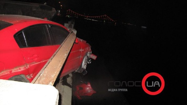В Киеве произошло ужасное ДТП: иномарка едва не улетела в Днепр (ФОТО)