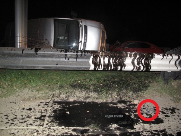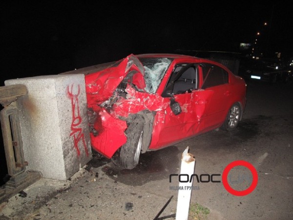 Предварительно стало известно, что «Мазда» красного цвета, которая двигалась от Моста метро в сторону Подола вдруг, на сухой дороге, потеряла управление, выскочила на тротуар, затем врезалась в огромный бетонный блок, отбросила его на несколько метров, после чего влетела еще в припаркованный микроавтобус «Фольксваген», который опрокинулся набок.
