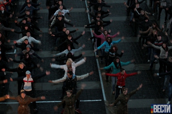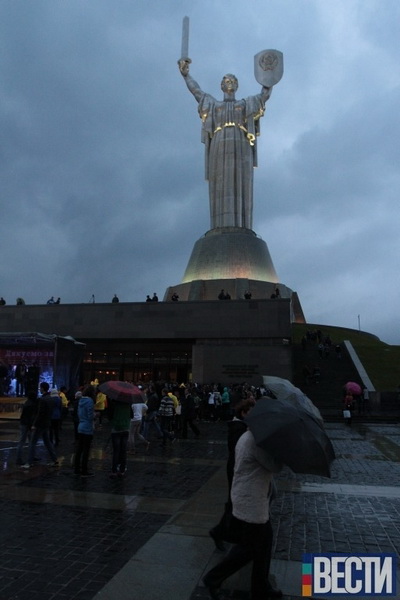 В Киеве возле музея Великой Отечественной войны прошел танцевальный флешмоб, посвященный освобождения Киева. В действе под ливнем участвовали в том числе и ученики школ. Несмотря на непогоду флэшмоб не остановили.