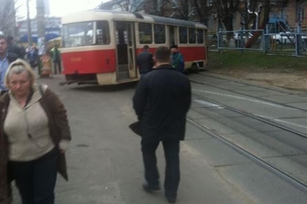 На Лукьяновке трамвай сошел с рельс (ФОТО)