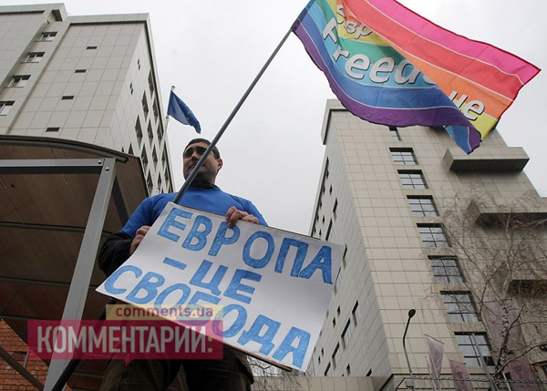 Сегодня общественная инициатива «Передовой гей-отряд Украины» провела безмолвный митинг против гомофобии и за евроинтеграцию Украины