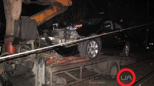 Затем неуправляемый автомобиль оказался на трамвайных путях и еще по касательной ударился в электроопору.