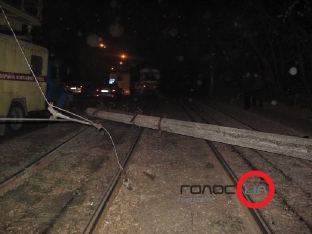 Из-за того, что сбитая электроопора оказалась на трамвайных путях, было заблокировано движение трамваев в обоих направлениях.