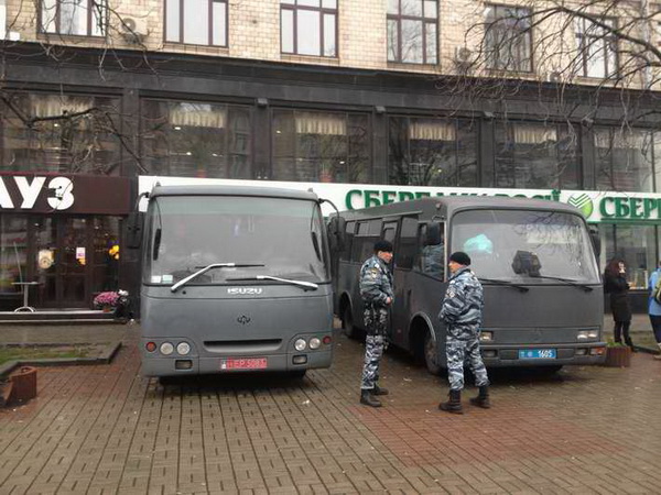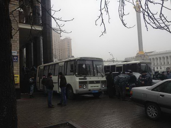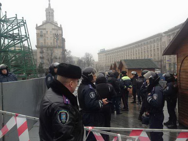 Милиция и «Беркут» стягивали свои силы. А коммунальшики монтировали новогоднюю ёлку.