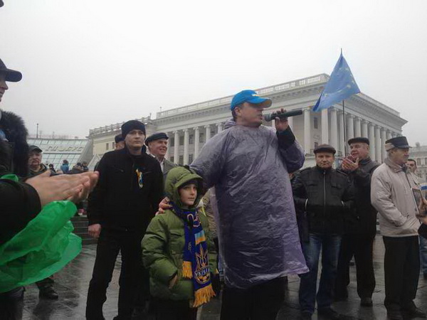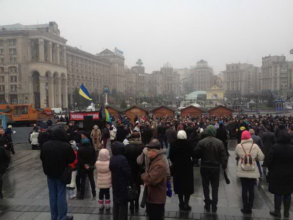 Сегодня днем около 300 человек мирно проводили на Майдане Независимости акцию протеста против отказа украинских властей от курса на Евроинтеграцию. Дети читали стихи украинских поэтов.