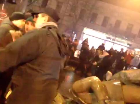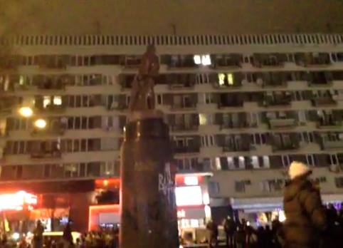 Памятник Ленину в центре Киева снесли.Представитель ВО «Свобода» Кайда заявил, что это «исторический момент».В данный момент митингующие поют гимн Украины и зажигают флаера.Фото со страницы Сергея Руденко на Facebook