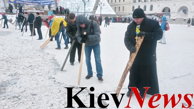 На Майдане Независимости продолжается акция протеста против политики украинской власти, которая началась еще 21 ноября 2013 года. Если погода в ноябре еще могла порадовать жителей города теплом, то с приходом декабря митингующим пришлось померзнуть.