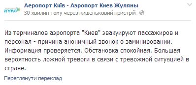 «На линию 102 позвонил неизвестный на сообщил о заминировании аэропортов «Борисполь» и «Жуляны», а также Центрального и Южного железнодорожных вокзалов», - заявили в милиции.