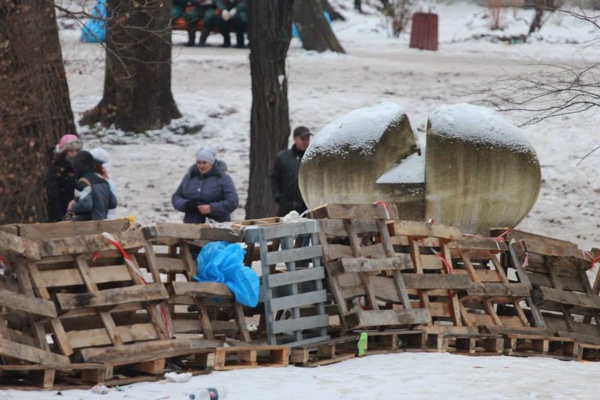 Активисты митинга в поддержку Януковича тоже возводят баррикады.