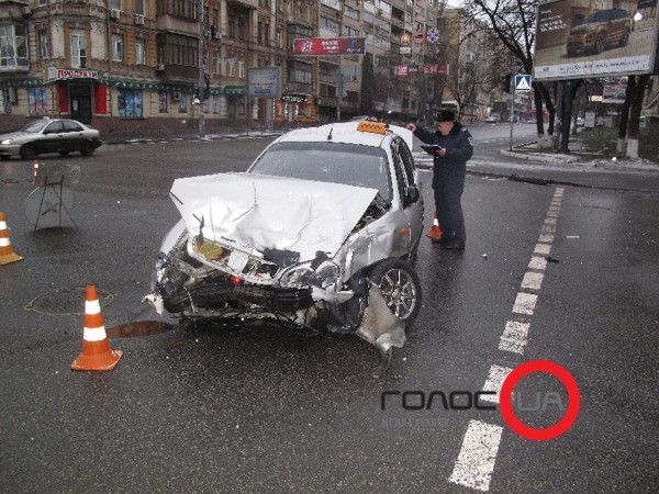 Новый год для некоторых киевлян и гостей столицы начался весьма неудачно. Около восьми часов утра на перекрестке улиц Жилянская и Льва Толстого произошло столкновение маршрутного такси “Киев- Белая Церковь» и легкового такси «Ланос».