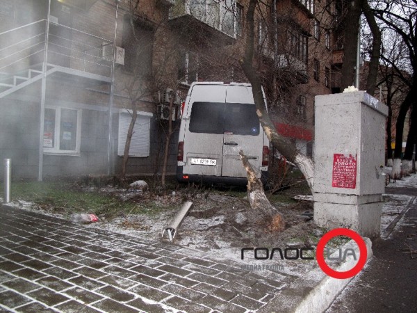 Как рассказал сам водитель маршрутки, он взял пассажиров на вокзале и начал ехать в сторону Белой Церкви. В салоне было 18 человек. Дорога была абсолютно свободной и «Мерседес» двигался по улице Жилянская, когда посреди перекрестка машину потряс мощный удар. Транспортное средство резко изменило направление движения и оказалось на тротуаре.