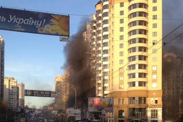 «На углу Чорновила и Златоустовской уже полчаса, как горит пафосный новострой «Киевгорстрой», - сообщила она.