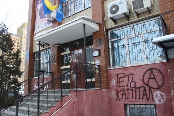 «Данный факт зарегистрирован в милиции, составлен протокол. Нам разбили окно, обрисовали стены надписями «геть капитал», «соц. Революция» и «геть фашистів» и сожгли флаг партии», - рассказали в пресс-службе районного отделения правящей Партии регионов.