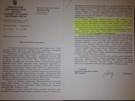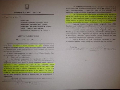 «По его словам, ни на Банковой, ни на Крещатике, ни на Майдане Независимости, начиная с конца ноября 2013 года, в том числе в дни особого противостояния 29, 30 ноября, 1 декабря, 11 декабря личный состав ВВ МВД Украины принимал участие в охране общественного порядка только в установленной форме и не применяли спецсредства», – сказал г-н Деревянко.