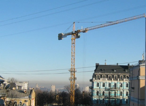 В Десятинном переулке на месте фундамента дворца князя Владимира продолжается активное строительство. Строители собрали очень высокий кран, который выше не только всех соседних домов, но и креста на расположенной рядом Андреевской церкви. Об этом рассказали местные жители.