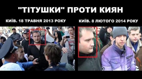 Активисты Евромайдана заявили, что среди «титушек», которые пришли 8 февраля разбирать баррикады на Крещатике, были те же «титушки», которые были замечены во время нападения на журналистов 18 мая во время акции «Вставай, Украина!» в Киеве в компании с Вадимом Титушко.