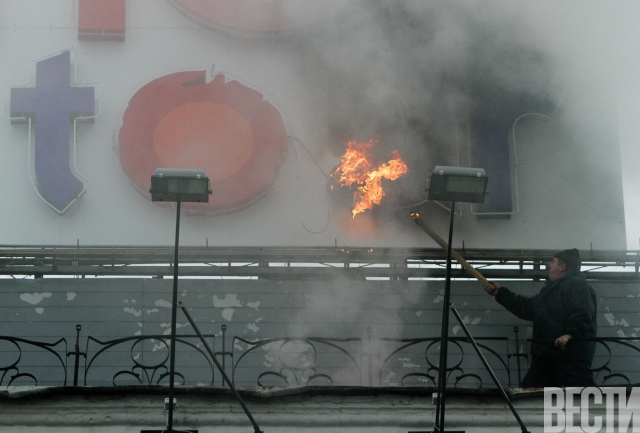 На улице Красноармейской 13/1 на крыше дома загорелась реклама. От пожара дорогу заволокло дымом. Пожарным удалось справиться с пламенем.