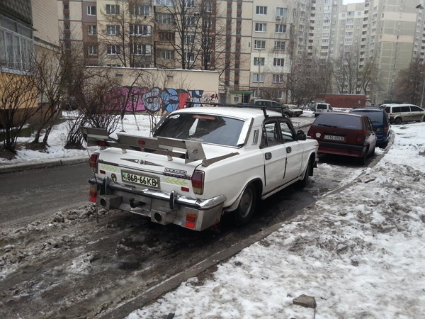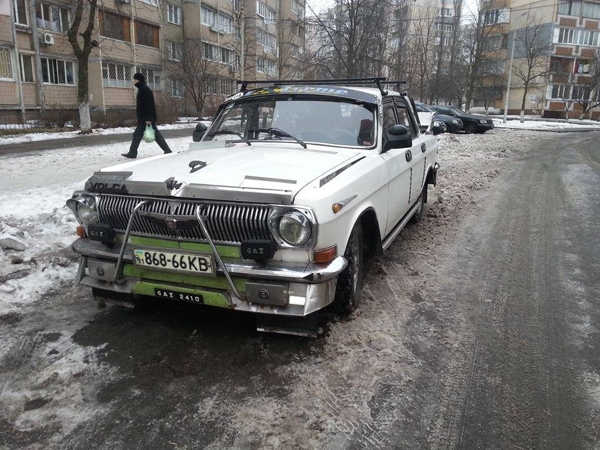 По Киеву ездит автомобиль «Волга», похожий на гоночный болид. Соответствующее фото разместил на своей странице в соцсети «Фейсбук» киевлянин Юрий Нестеренко.