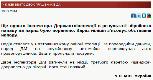 Трагедия произошла примерно в 1:10 ночи 19 февраля 2014 года. Очевидец своими глазами видел два трупа инспекторов. Третий, окровавленный, ходил рядом. На месте много милиции.