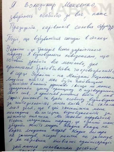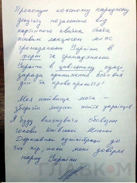 В Facebook оппозиционные народные депутаты сообщают о том, что глава Киевской горадминистрации заявил о своем выходе из состава Партии регионов.