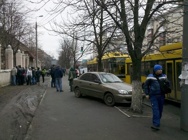 Около 20 людей заблокировали контрольно-пропускной пункт воинской части внутренних войск, расположенной на Воздухофлотском проспекте в Киеве