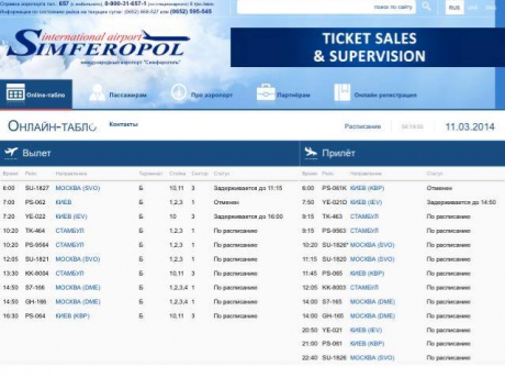 Авиарейсы из Киева аэропорт Симферополя не принимает